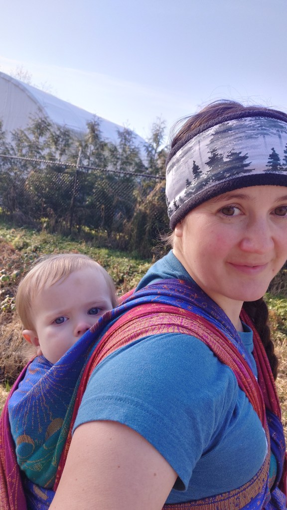 Wrap is Oscha Lunae Aurelia in a size 6. Carry is Christina’s Ruckless Back Carry courtesy of Wrapyouinlove’s YouTube tutorial.